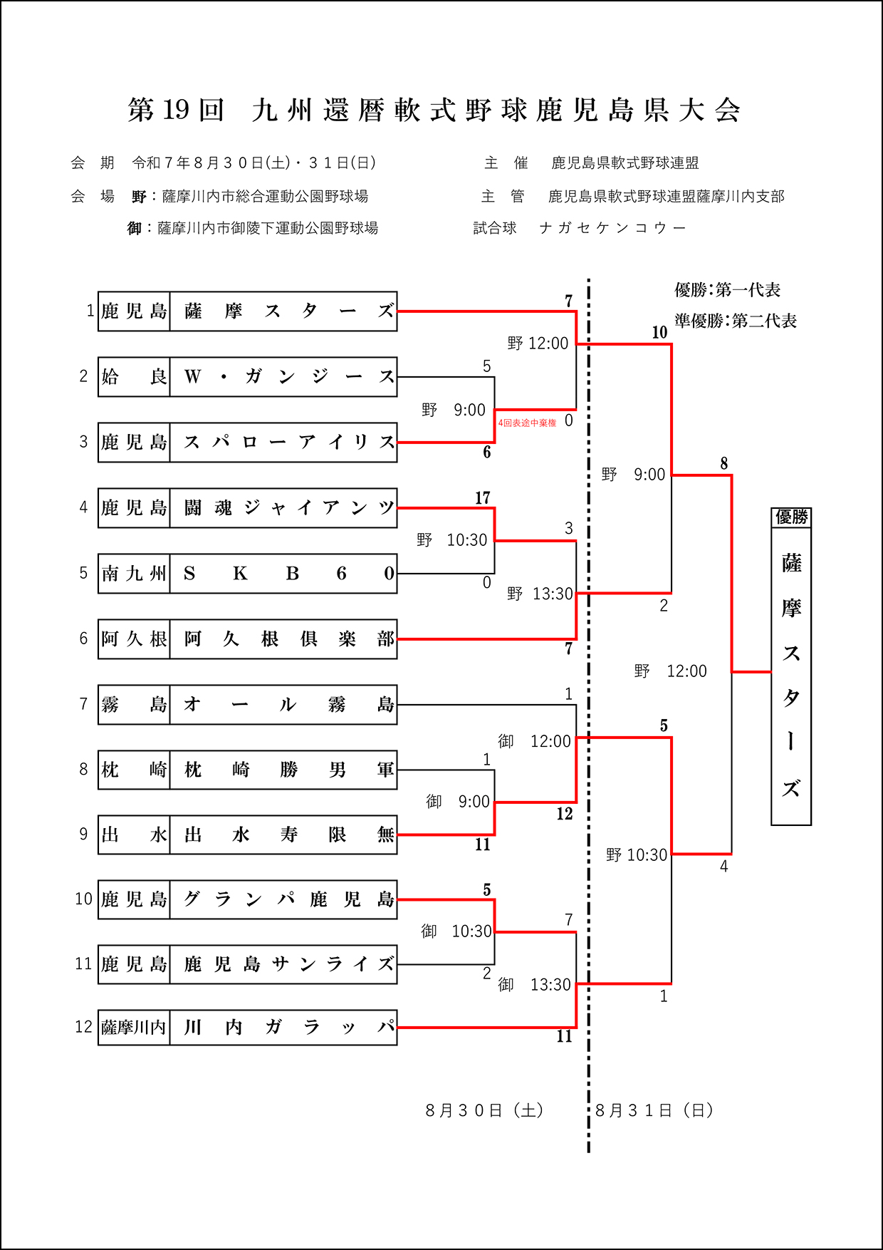 ▽【組合せ】第15回鹿児島県還暦野球大会