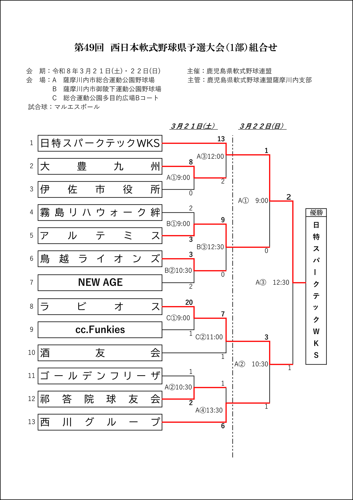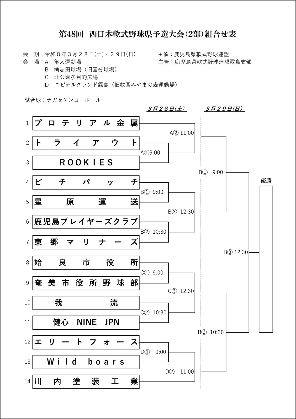 ▽【組合せ】第48回西日本軟式野球県予選大会(2部)